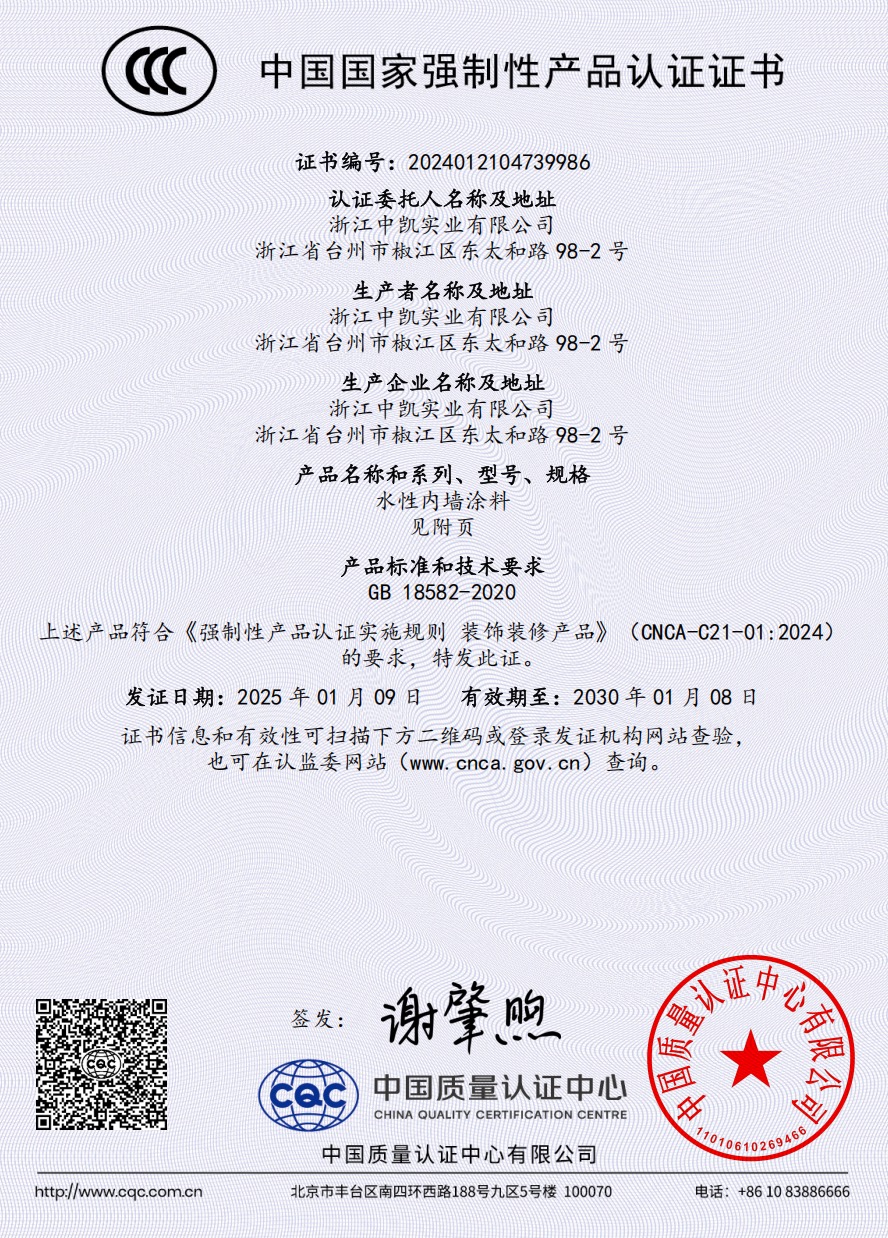 浙江中凱實業(yè)有限公司是一家由美國杜邦涂料化工集團有限公司提供高新技術,與美國杜邦化工集團有限公司授權在中國生產各種建筑涂料的制造企業(yè)。